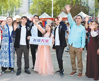 Overseas students from Central Asia pose for a picture at the eighth International Cultural Festival at China University of Petroleum in Beijing, May 26, 2025. (People's Daily/Chen Shangwen)