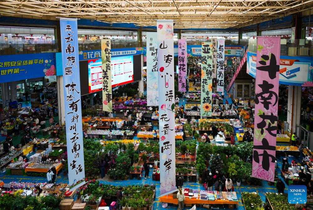 This photo shows a view of the Dounan Flower Market in Kunming, southwest China's Yunnan Province, Dec. 31, 2025. As the New Year approaches, the Dounan Flower Market in Kunming, dubbed the "flower capital of Asia," is gradually heating up. (Xinhua/Chen Xinbo)