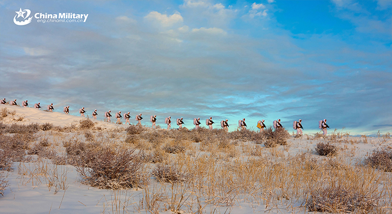 Soldiers assigned to a border defense regiment under the Chinese PLA Army conduct ruck march along the mountain trail in late December, 2025. (eng.chinamil.com.cn/Photo by Wang Yue)