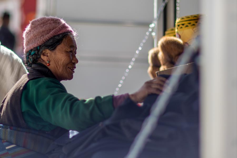 Villagers chat at a market in Zimgag Village of Chamco Township, in Dingri County of Xigaze City, southwest China's Xizang Autonomous Region, on Jan. 5, 2026. (Xinhua/Jiang Fan)