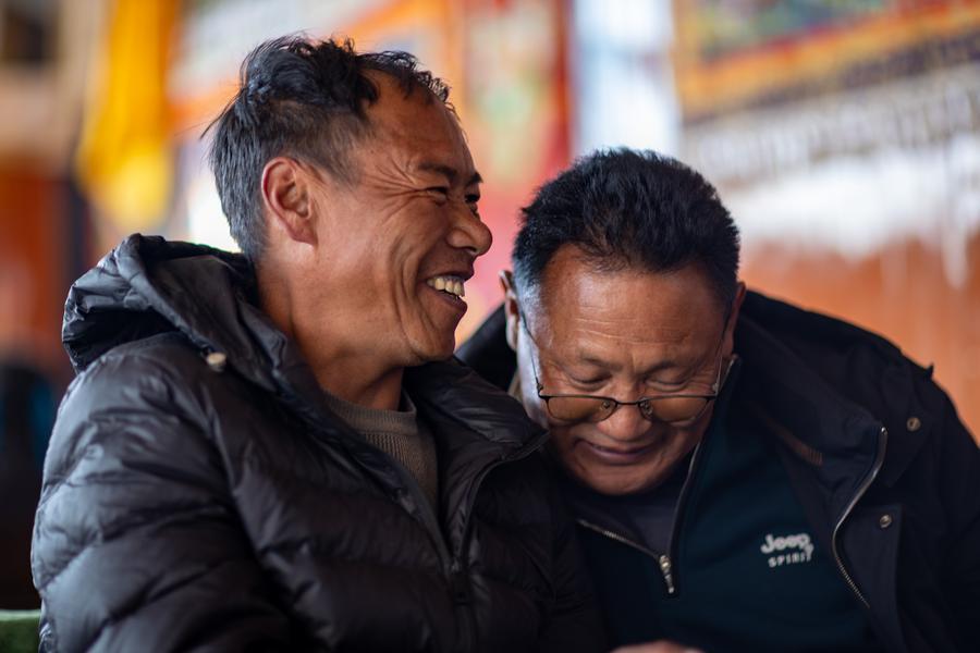 Villagers enjoy leisure time at a sweet tea house in Zimgag Village of Chamco Township, in Dingri County of Xigaze City, southwest China's Xizang Autonomous Region, on Jan. 5, 2026. (Xinhua/Jiang Fan)