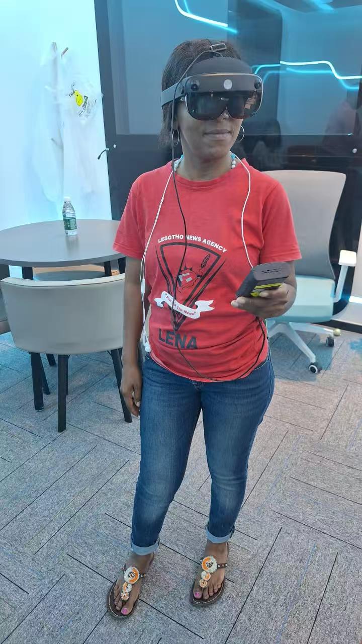 Motheba Tsunyane tries a virtual reality headset. (Photo courtesy of Motheba Tsunyane)