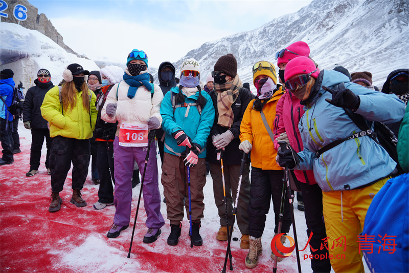 Climbing enthusiasts pose for a photo at Mt. Gangshika in Menyuan Hui Autonomous County, Haibei Tibetan Autonomous Prefecture, northwest China's Qinghai Province. (People's Daily Online/Kuang Yu)