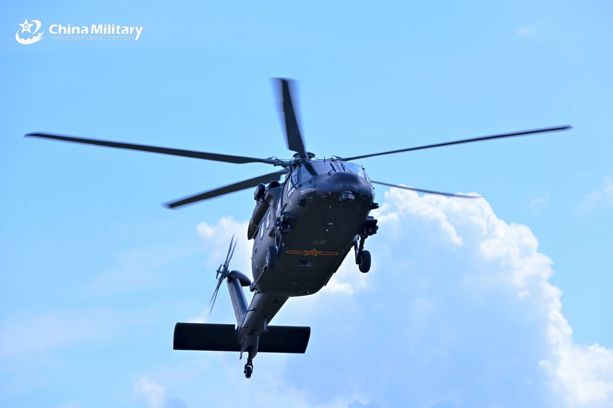 A Z-20 utility helicopter attached to a brigade under the Chinese PLA 73rd Group Army hovers over the target area during a flight training exercise in mid-December, 2025. (eng.chinamil.com.cn/Photo by Zhou Zelai)