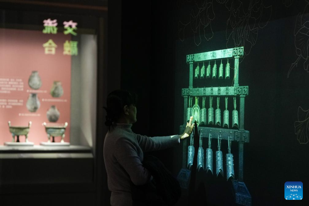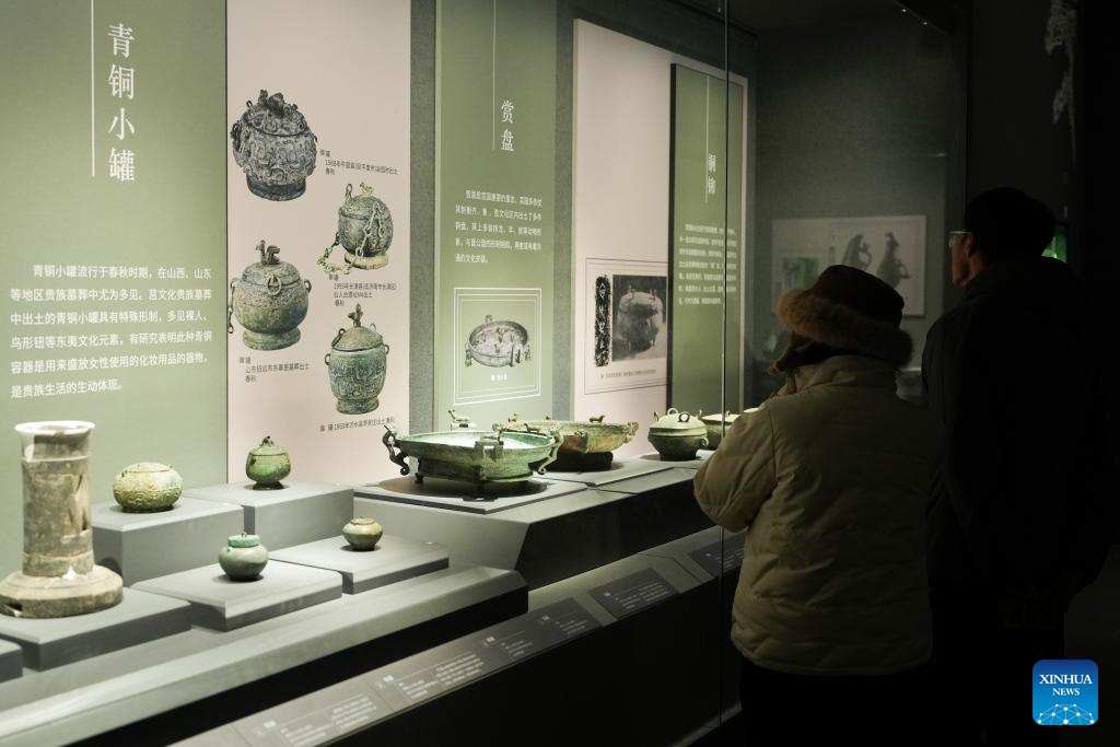 A woman visits an exhibition featuring culture of ancient Dongyi tribes at the Shandong Museum in Jinan, east China's Shandong Province, Jan. 9, 2026. The exhibition showcased over 110 pieces (sets) of cultural relics highlighting the culture of ancient Dongyi tribes. (Xinhua/Zhu Zheng)