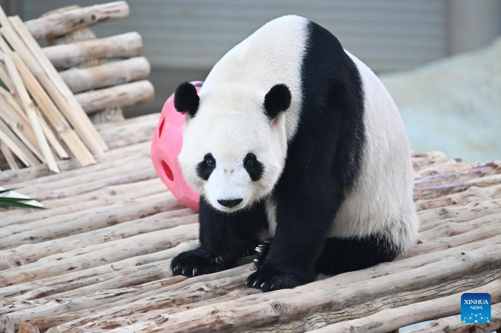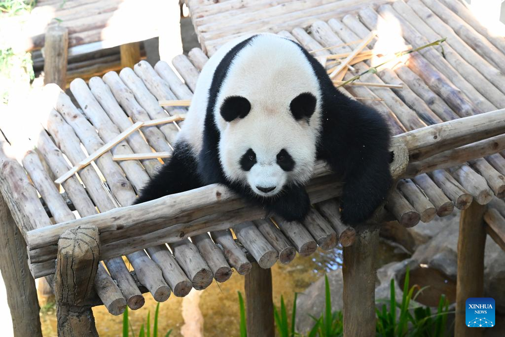 Giant panda "Xiaoyue" is pictured at Zoo Negara in Selangor, Malaysia, on Jan. 10, 2026. China's giant pandas "Chenxing" and "Xiaoyue," currently on loan to Malaysia, officially met the public here on Saturday. (Xinhua/Cheng Yiheng)