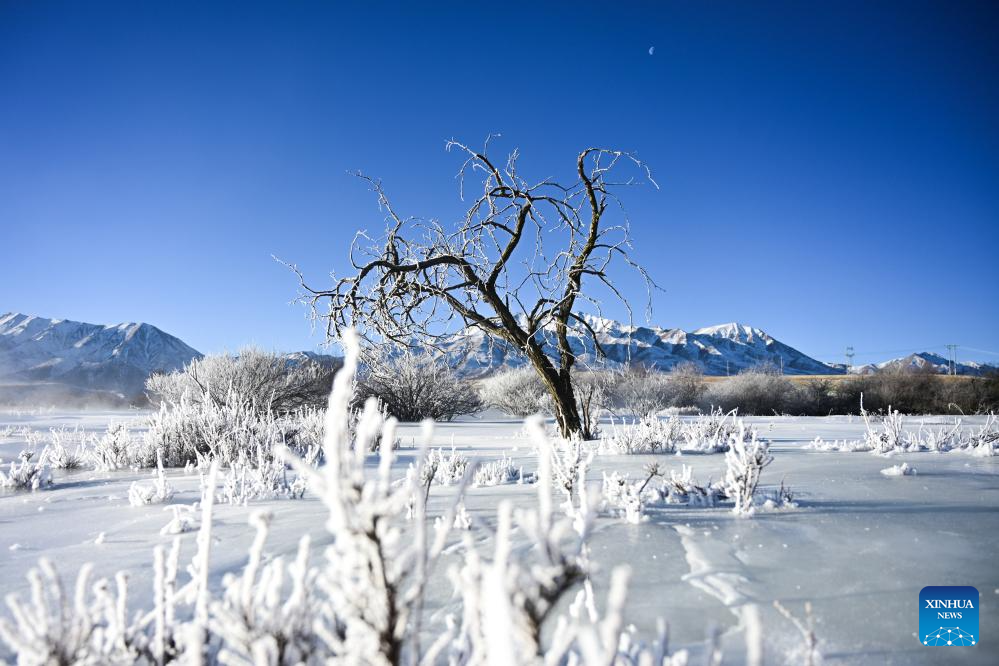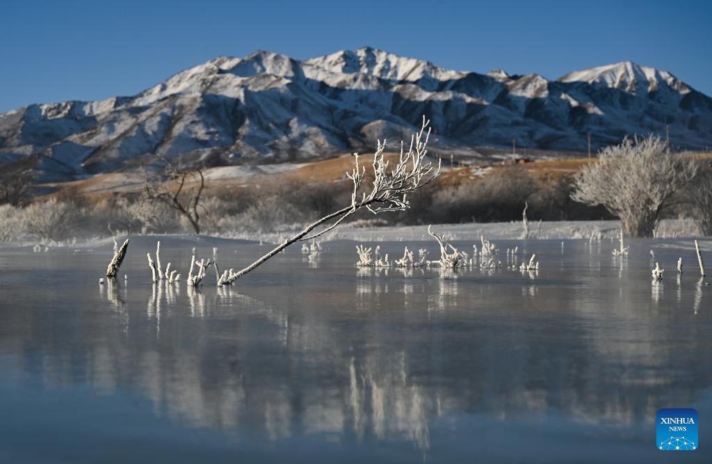 This photo taken on Jan. 10, 2026 shows the rime scenery in Qilian County of Haibei Tibetan Autonomous Prefecture, northwest China's Qinghai Province. (Xinhua/Zhang Long)