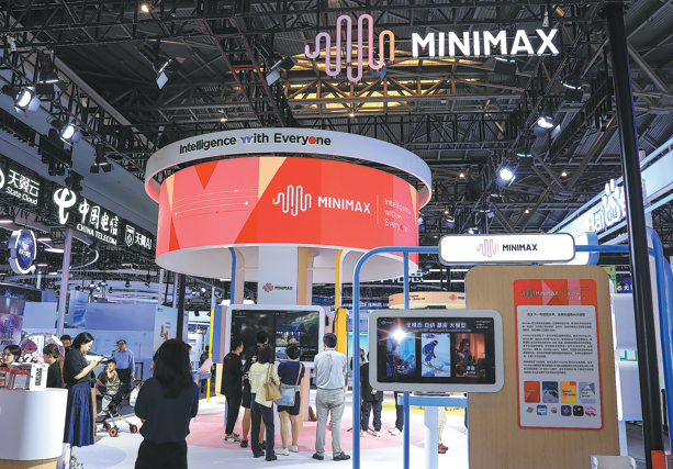 Visitors learn about MiniMax at its exhibition area during 2025 World Artificial Intelligence Conference in Shanghai on July 29. CHINA DAILY