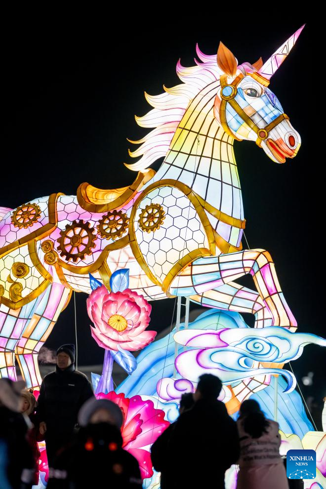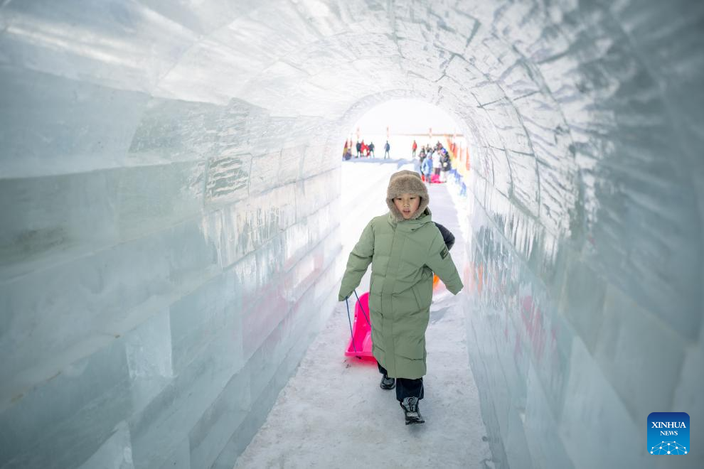 This photo taken on Dec. 31, 2025 shows people attending an ice and snow festival in Hohhot, north China's Inner Mongolia Autonomous Region. Hohhot has launched more than 300 winter amusement programs since December 2025, incorporating ice and snow sports, cultural experiences and vogue consumption to boost the local economy. (Photo by Xu Ting/Xinhua)