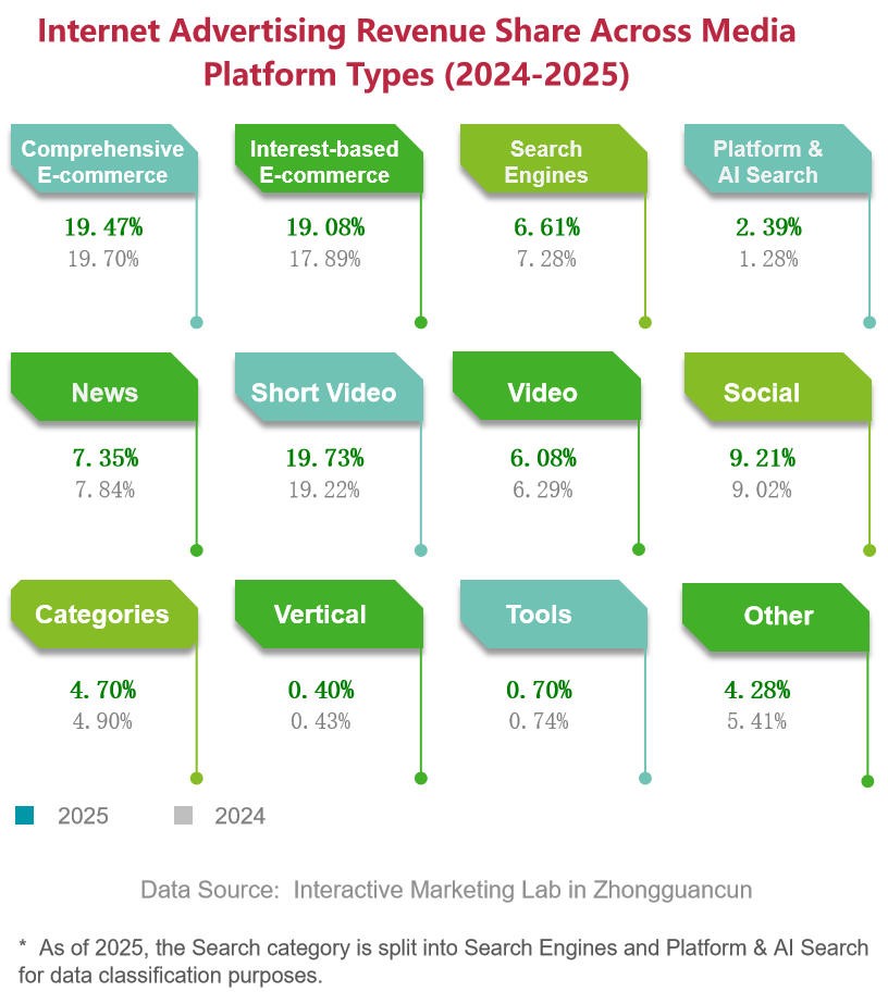 AI-powered search is reshaping traffic entry points. Traditional search engine ad revenue remains flat, while the "in-platform + AI search" category has surged by 107.4 percent.