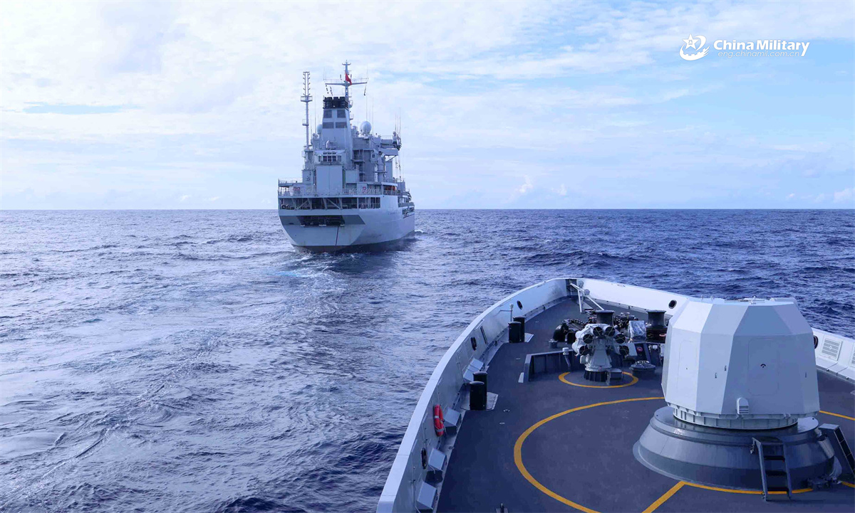 Two naval vessels attached to a flotilla with the navy under the Chinese PLA Southern Theater Command steam in astern formation to a designated sea area during a maritime training exercise on January 7, 2026. (eng.chinamil.com.cn/Photo by Yu Chuanjun)