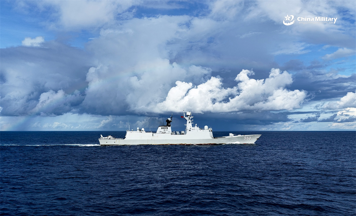 The guided-missile frigate Dali (Hull 553) attached to a flotilla with the navy under the Chinese PLA Southern Theater Command steams at an undisclosed sea area during a maritime training exercise on January 7, 2026. (eng.chinamil.com.cn/Photo by Yu Chuanjun)