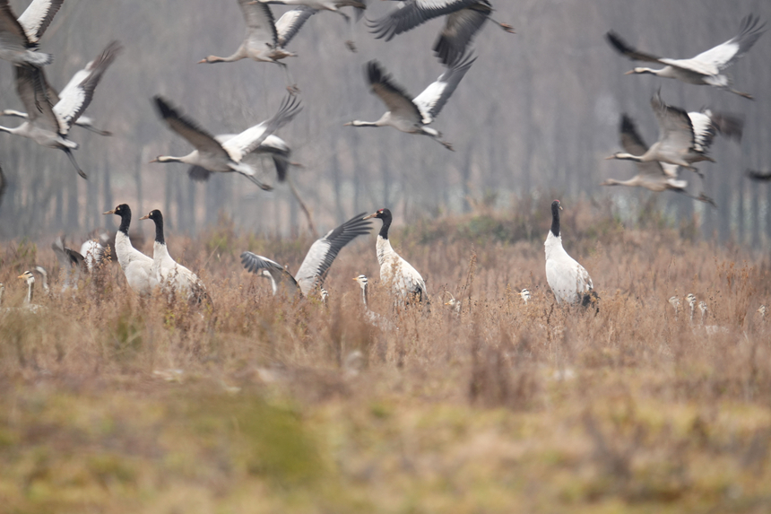 "The continuously improving ecology helps them settle in comfortably. During harsh winter conditions, bird rangers carry out supplementary feeding and break ice to provide drinking water, ensuring the cranes winter here safely," Zhao said.