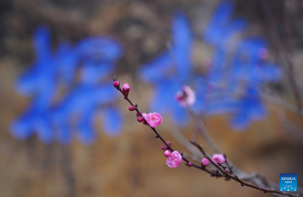 This photo taken on Jan. 6, 2026 shows plum flowers seen in Luoyang City, central China's Henan Province.