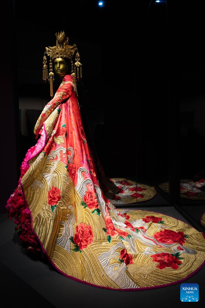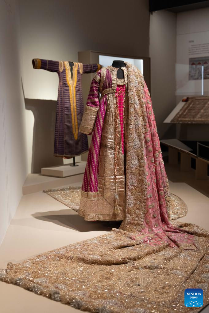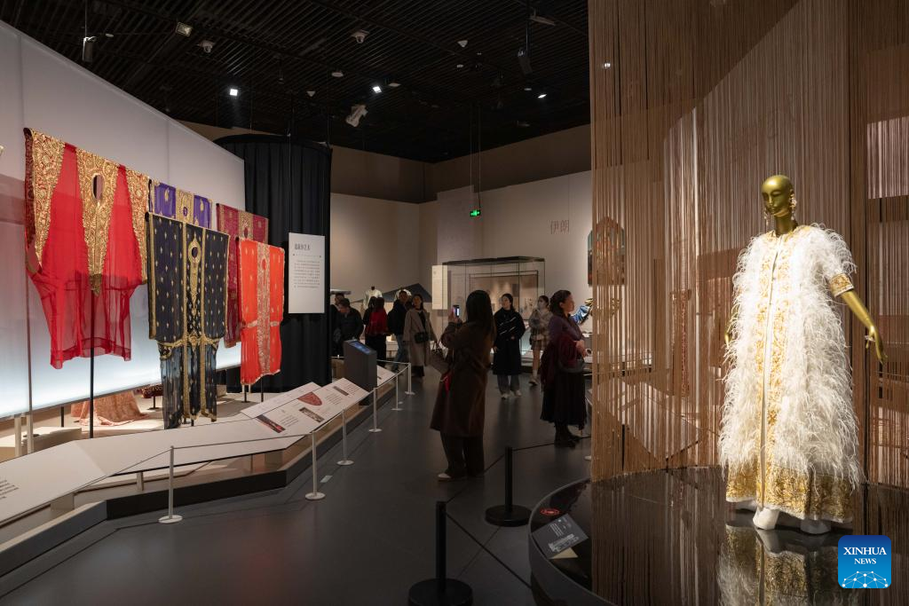 This photo taken on Jan. 13, 2026 shows an exhibit at the exhibition "Golden Thread: the Art of Dressing from North Africa to East Asia" at the Chengdu Museum in Chengdu, southwest China's Sichuan Province. The exhibition features over 200 pieces (sets) of gold-threaded textile artifacts from seven French cultural institutions, alongside precious collections from eight Chinese museums and cultural heritage organizations. (Xinhua/Xu Bingjie)