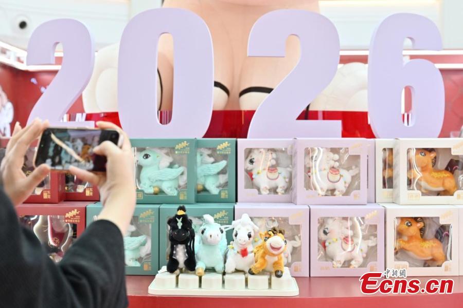 Consumers browse a Year of the Horse-themed designer toy store in Shilong Town, Dongguan, south China's Guangdong Province, Jan. 14, 2026. (Photo: China News Service/Chen Chuhong)