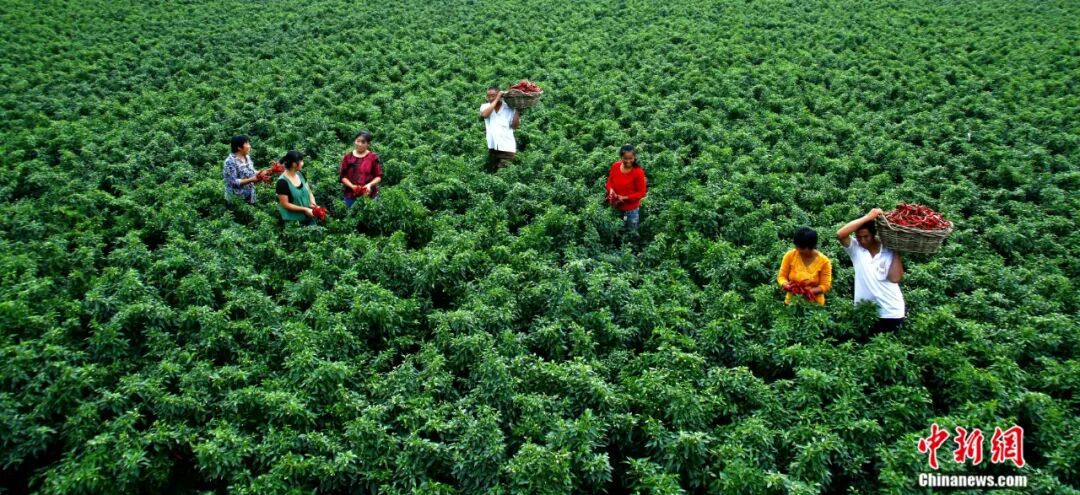 Farmers harvest chili peppers in Jize county, north China's Hebei Province. (Photo courtesy of the Publicity Department of the Communist Party of China Jize County Committee)