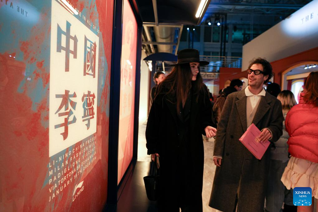 A model presents creations of Fall/Winter 2026 collections of Li-Ning China during the Milan Men's Fashion Week in Milan, Italy, Jan. 16, 2026. (Xinhua/Li Jing)