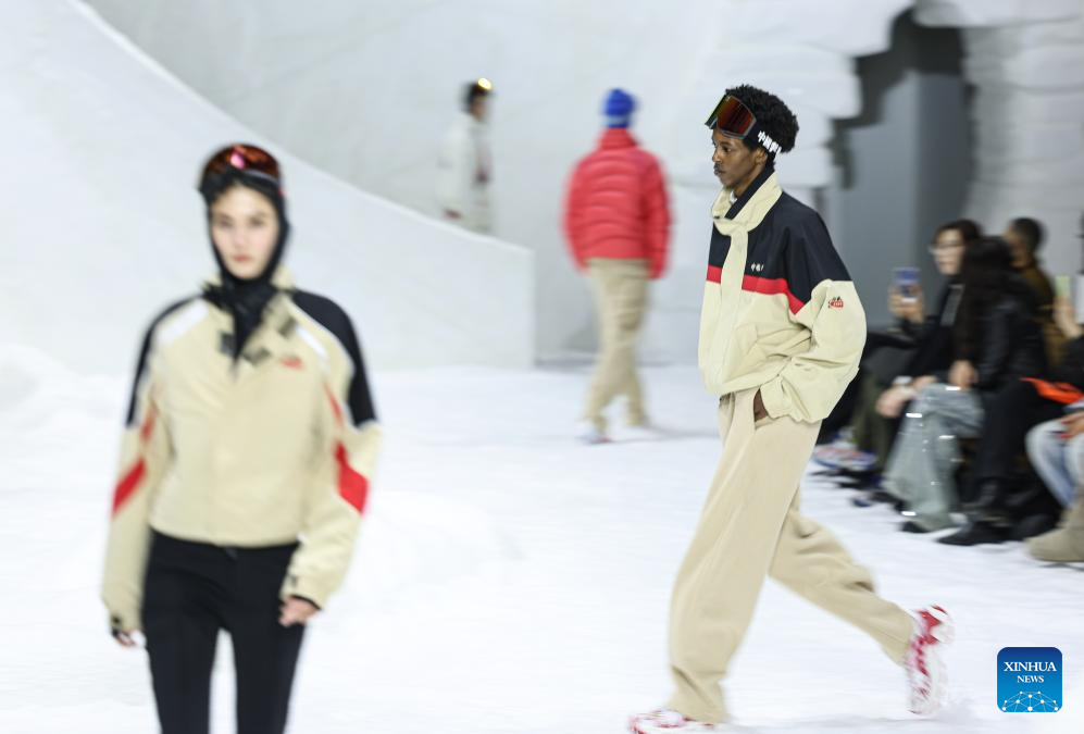 Models present creations of Fall/Winter 2026 collections of Li-Ning China during the Milan Men's Fashion Week in Milan, Italy, Jan. 16, 2026. (Xinhua/Li Jing)
