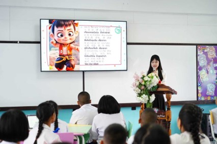 A teacher in a Thai school gives a Chinese class using an intelligent teaching system. (Photo/Shi Panpan)