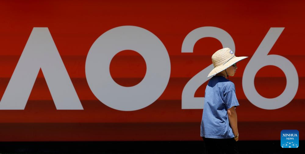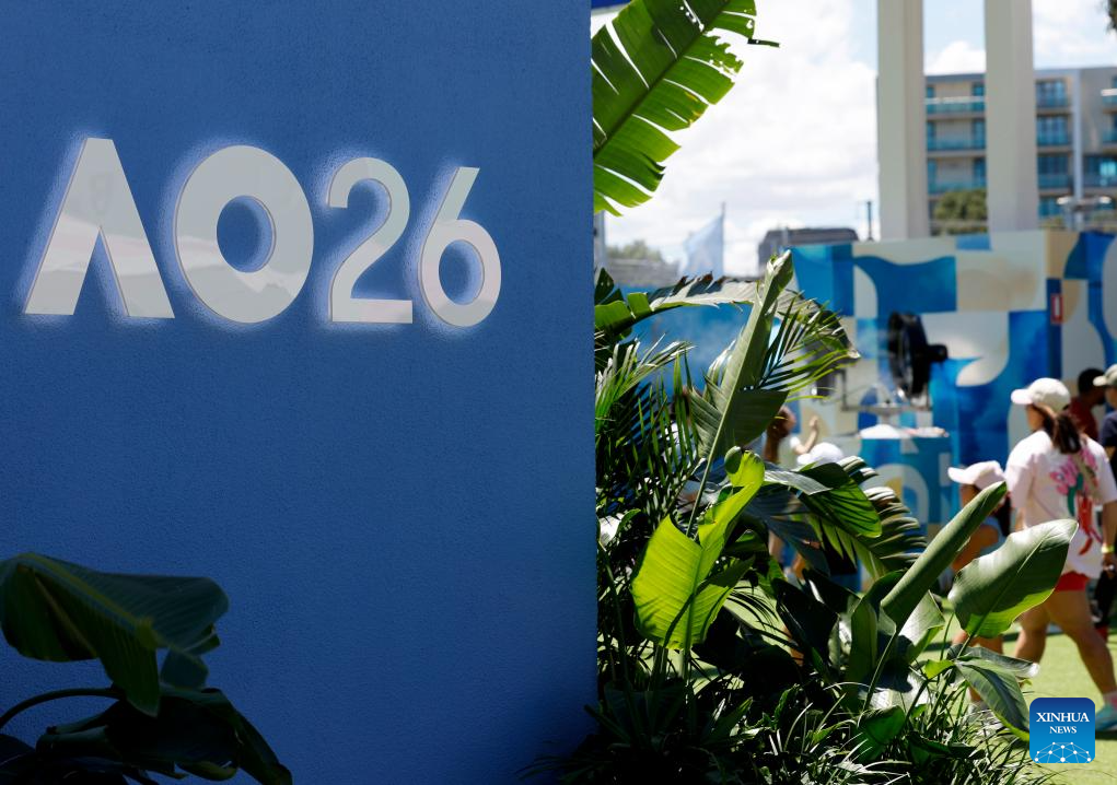 This photo taken on Jan. 17, 2026 shows the Australian Open 2026 logo at Melbourne Park in Melbourne, Australia. The main draw of the Australian Open tennis tournament 2026 runs at Melbourne Park in Melbourne, Australia, from Jan. 18 to Feb. 1, 2026. (Xinhua/Ma Ping)