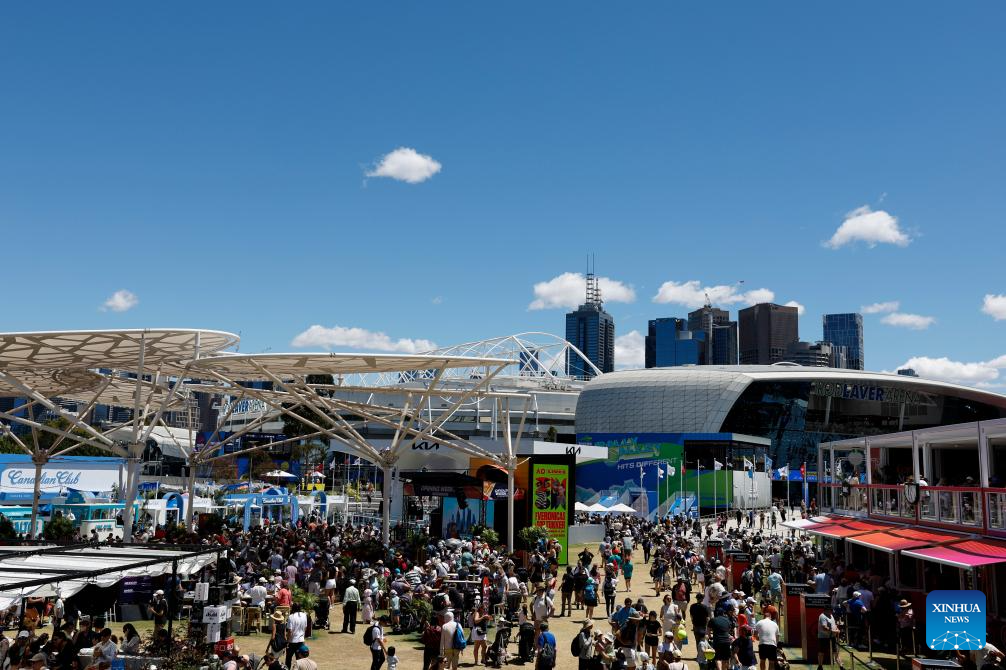 People are seen at Melbourne Park in Melbourne, Australia, Jan. 17, 2026. The main draw of the Australian Open tennis tournament 2026 Open runs at Melbourne Park in Melbourne, Australia, from Jan. 18 to Feb. 1, 2026. (Xinhua/Ma Ping)