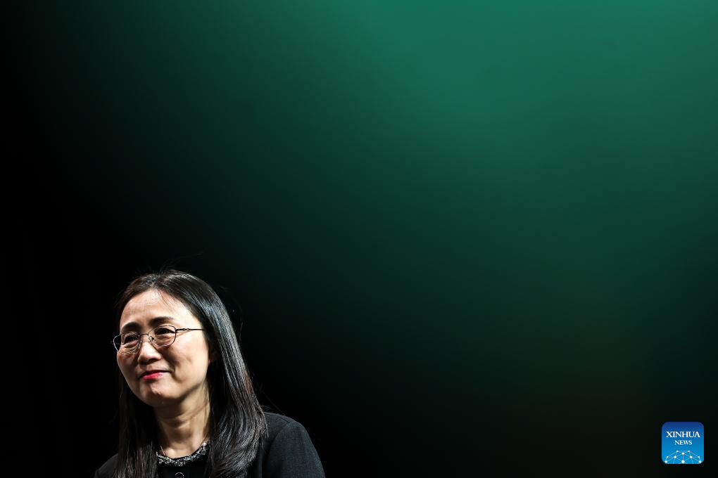 Guo Xiaojing, director of the Hungarian Research Center at Beijing Foreign Studies University, is seen during a gala marking the Day of the Hungarian Culture in Budapest, Hungary, Jan. 17, 2026. Chinese linguist and literary translator Guo Xiaojing was awarded the "Knight of Universal Culture" title here on Saturday for her outstanding contributions to cultural exchange and mutual understanding between China and Hungary. The award was presented during a gala marking the Day of the Hungarian Culture at the Stefania Palace Cultural Center. (Photo by David Balogh/Xinhua)