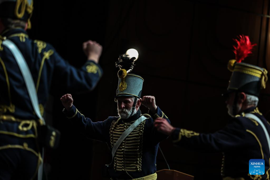 An artist performs during a gala marking the Day of the Hungarian Culture in Budapest, Hungary, Jan. 17, 2026. Chinese linguist and literary translator Guo Xiaojing was awarded the "Knight of Universal Culture" title here on Saturday for her outstanding contributions to cultural exchange and mutual understanding between China and Hungary. The award was presented during a gala marking the Day of the Hungarian Culture at the Stefania Palace Cultural Center. (Photo by David Balogh/Xinhua)