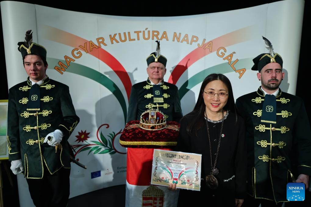 BUDAPEST, Jan. 17 (Xinhua) -- Chinese linguist and literary translator Guo Xiaojing was awarded the "Knight of Universal Culture" title here on Saturday for her outstanding contributions to cultural exchange and mutual understanding between China and Hungary.