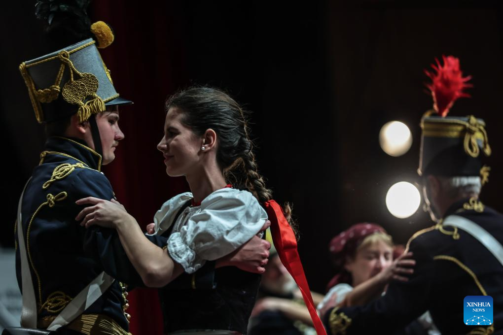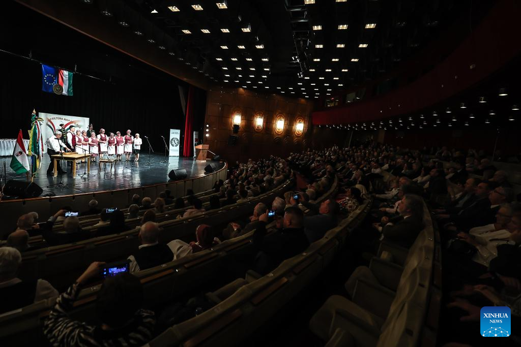 Artists perform during a gala marking the Day of the Hungarian Culture in Budapest, Hungary, Jan. 17, 2026. Chinese linguist and literary translator Guo Xiaojing was awarded the "Knight of Universal Culture" title here on Saturday for her outstanding contributions to cultural exchange and mutual understanding between China and Hungary. The award was presented during a gala marking the Day of the Hungarian Culture at the Stefania Palace Cultural Center. (Photo by David Balogh/Xinhua)