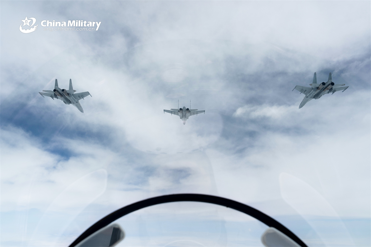 J-16 multi-role fighter jets attached to an aviation brigade under the Chinese PLA Air Force fly in formation toward the designated airspace during a flight training exercise on January 5, 2026. (eng.chinamil.com.cn/Photo by Guo Shiteng)