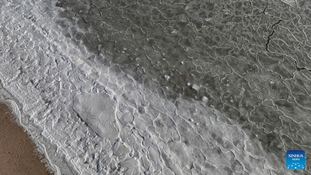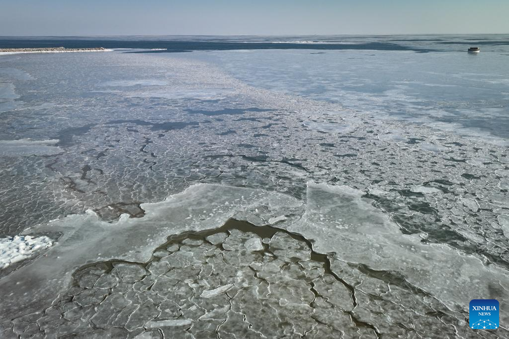 A drone photo taken on Jan. 21, 2026 shows a view over sea ice in Xingcheng of Huludao City, northeast China's Liaoning Province. (Photo by Tian Jia/Xinhua)