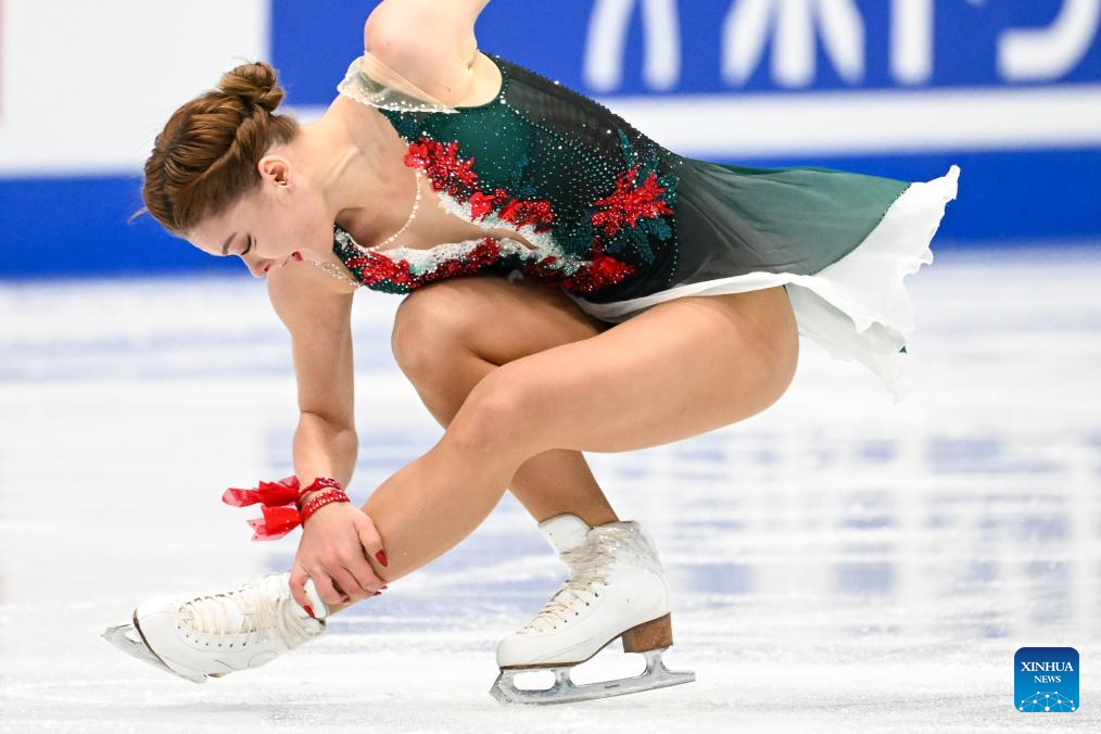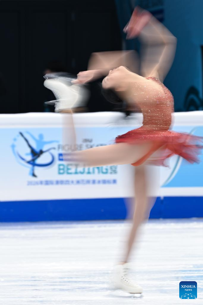 Sofia Samodelkina of Kazakhstan performs during the women's short program at the ISU Four Continents Figure Skating Championships in Beijing, China, Jan. 22, 2026. (Xinhua/Ju Huanzong)