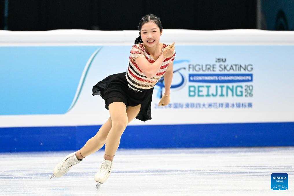 Zhu Yi of China performs during the women's short program at the ISU Four Continents Figure Skating Championships in Beijing, China, Jan. 22, 2026. (Xinhua/Ju Huanzong)