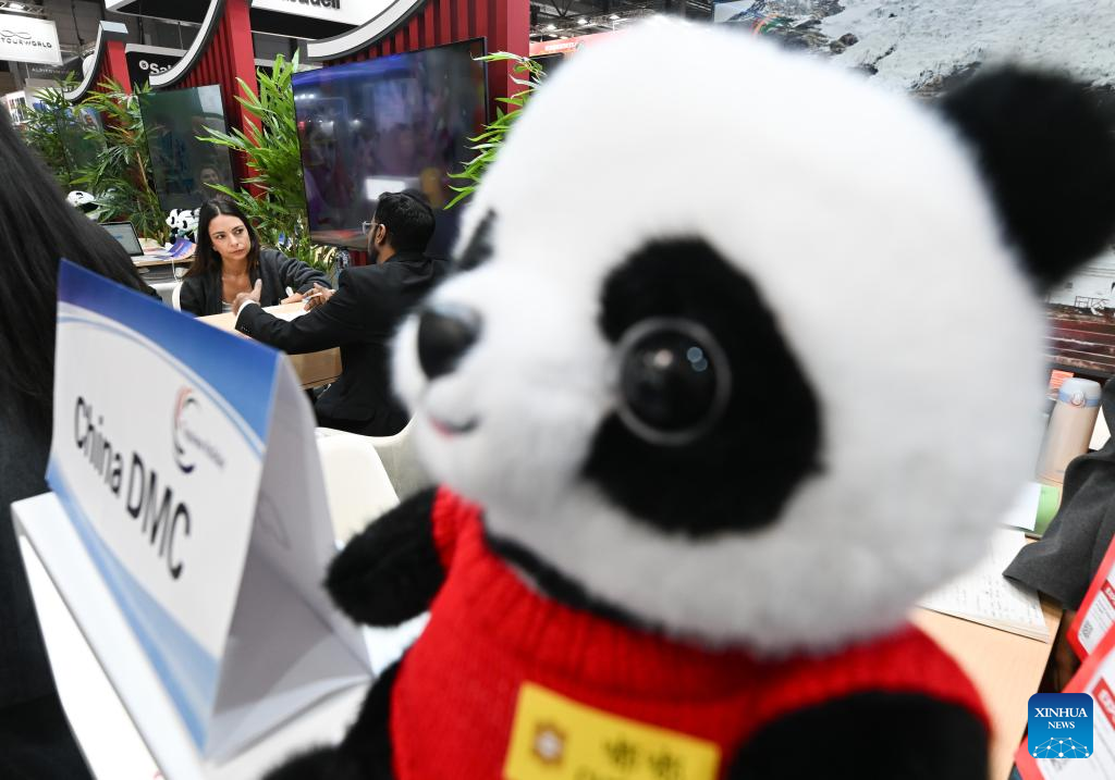 Exhibitors visit the booth of China during the 2026 FITUR international tourism exhibition in Madrid, Spain on Jan. 22, 2026. The booth of China held its opening ceremony at the 2026 FITUR international tourism exhibition in Madrid on Thursday. (Xinhua/Cheng Min)