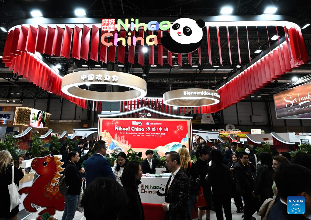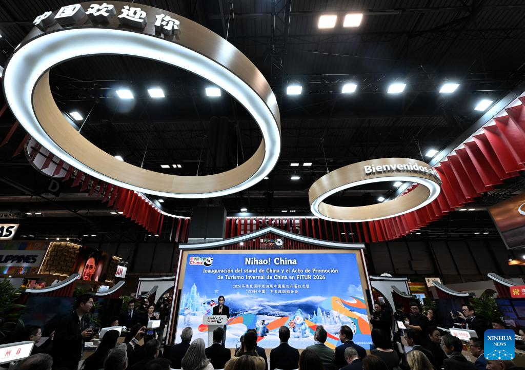 Photo shows the booth of China during the 2026 FITUR international tourism exhibition in Madrid, Spain, Jan. 22, 2026. The booth of China held its opening ceremony at the 2026 FITUR international tourism exhibition in Madrid on Thursday. (Xinhua/Cheng Min)