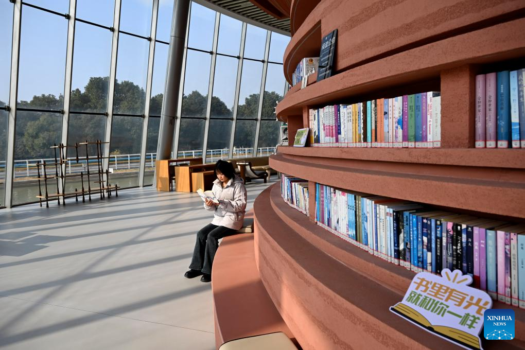 A tourist reads a book at an education center of the Lingjiatan relics site in Hanshan County, Ma'anshan, east China's Anhui Province, on Dec. 25, 2025. The Lingjiatan relics site in east China's Anhui is a Neolithic settlement dating back 5,300 to 5,800 years, with an area of about 1.6 million square meters.