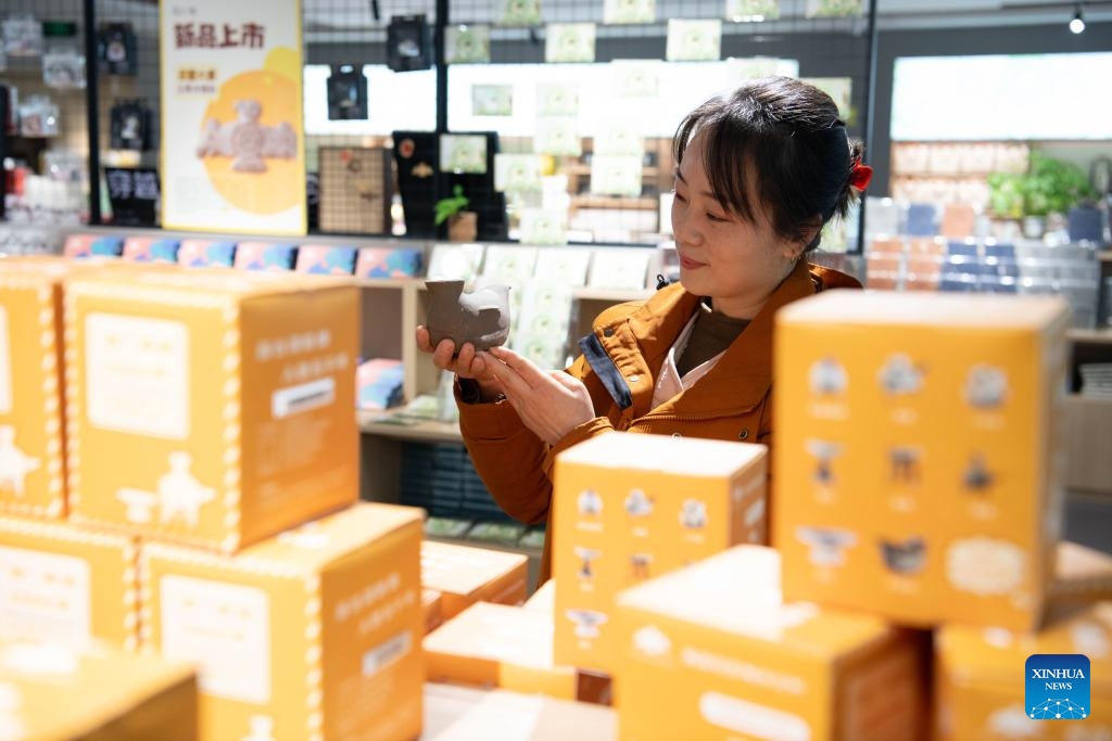 Lingjiatan-themed cultural and creative products as well as immersive experiences have been developed to help promote the relics site among the public. (Xinhua/Zhang Duan)