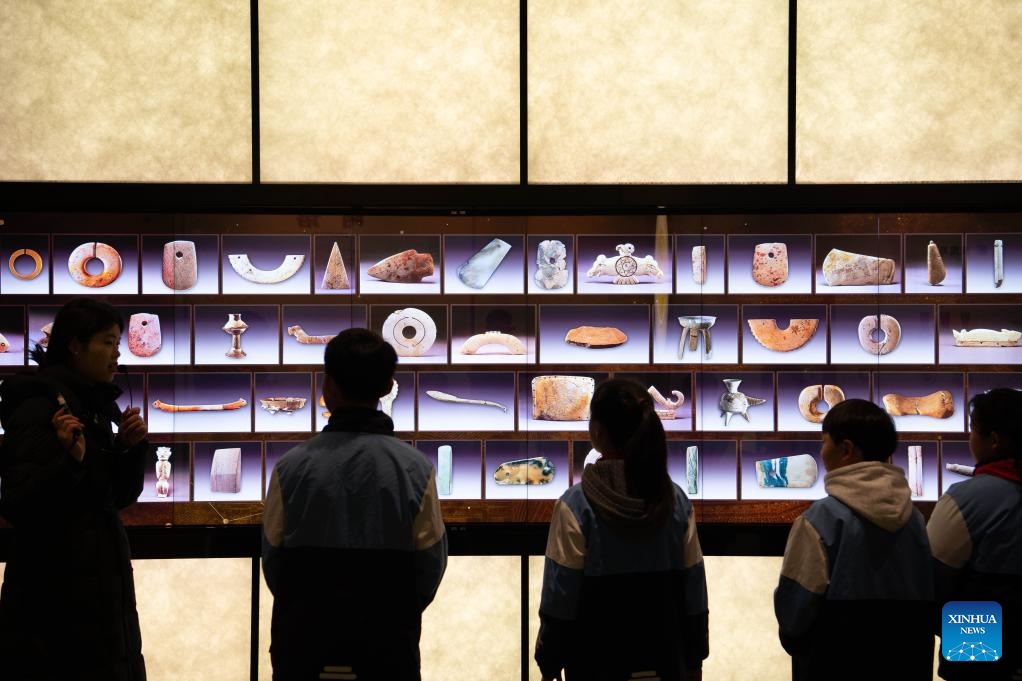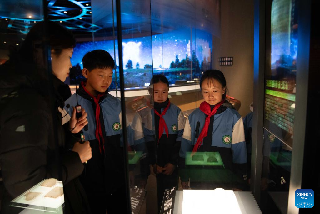 Students visit the Lingjiatan Site Museum in Hanshan County, Ma'anshan, east China's Anhui Province, on Jan. 13, 2026. The Lingjiatan relics site in east China's Anhui is a Neolithic settlement dating back 5,300 to 5,800 years, with an area of about 1.6 million square meters.