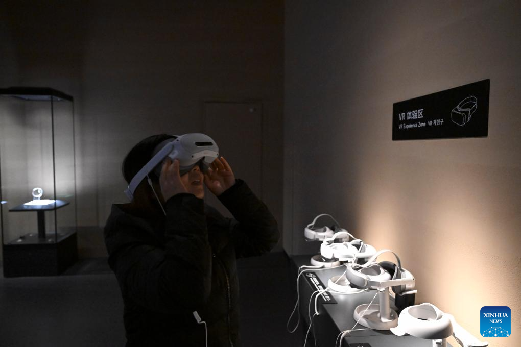 A visitor tries on a VR headset at the Lingjiatan Site Museum in Hanshan County, Ma'anshan, east China's Anhui Province, on Dec. 24, 2025. The Lingjiatan relics site in east China's Anhui is a Neolithic settlement dating back 5,300 to 5,800 years, with an area of about 1.6 million square meters.