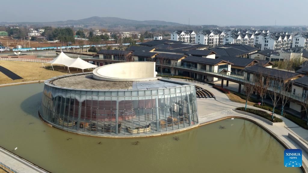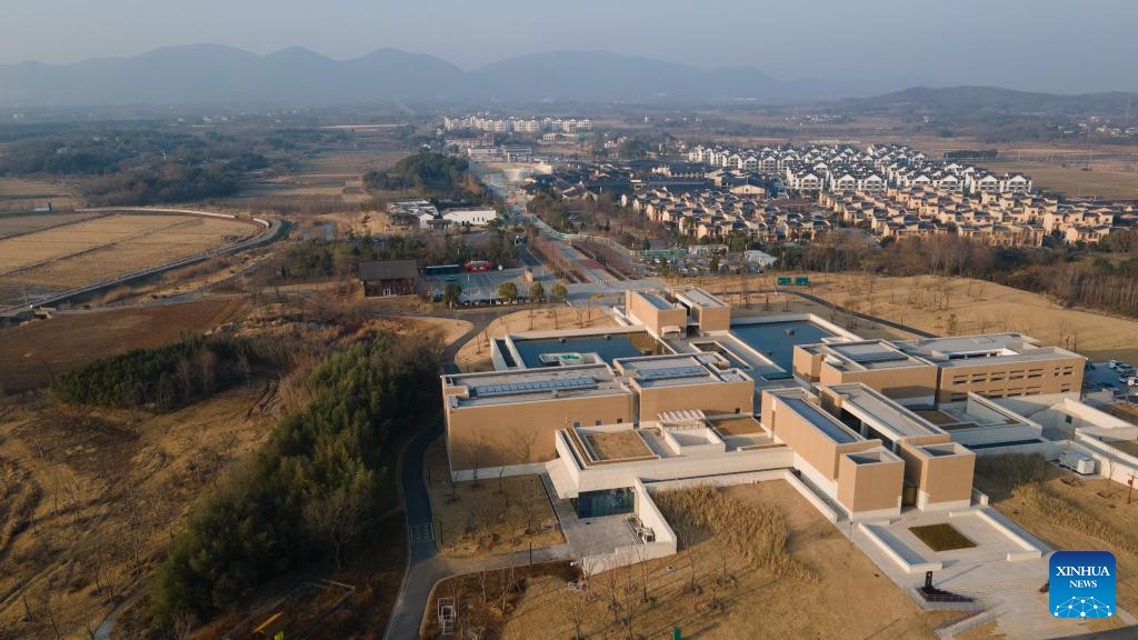 An aerial drone photo taken on Jan. 13, 2026 shows a view of the Lingjiatan Site Museum in Hanshan County, Ma'anshan, east China's Anhui Province. The Lingjiatan relics site in east China's Anhui is a Neolithic settlement dating back 5,300 to 5,800 years, with an area of about 1.6 million square meters.
