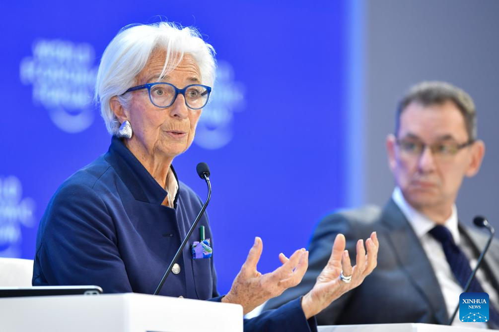 Christine Lagarde, president of the European Central Bank, speaks at the World Economic Forum (WEF) Annual Meeting 2026 in Davos, Switzerland, Jan. 23, 2026. The WEF concluded its 2026 annual meeting here on Friday. (Xinhua/Lian Yi)