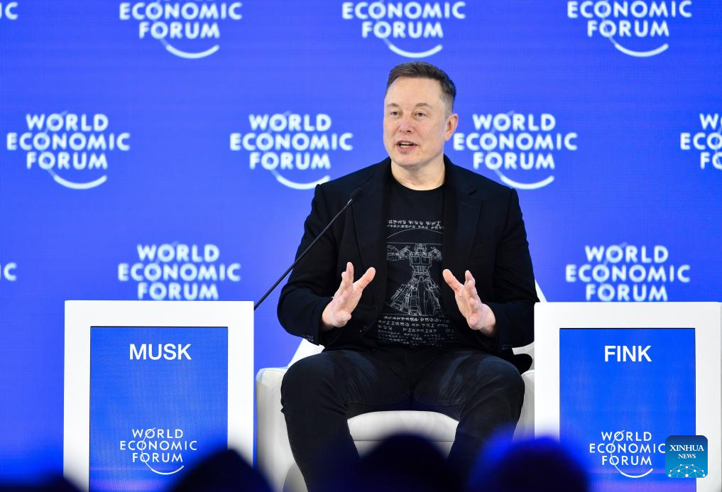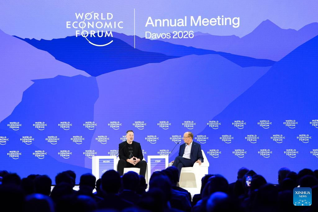 U.S. entrepreneur Elon Musk speaks at the World Economic Forum (WEF) Annual Meeting 2026 in Davos, Switzerland, Jan. 22, 2026. (Xinhua/Lian Yi)