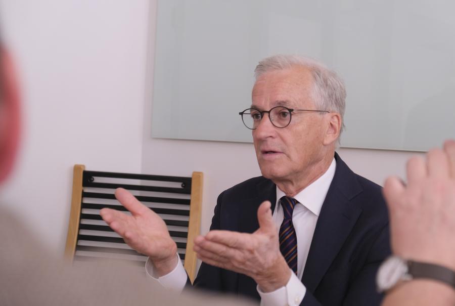 Norwegian Prime Minister Jonas Gahr Store meets with foreign journalists in Oslo, Norway, on May 19, 2025. (Xinhua/Zhang Yuliang)
