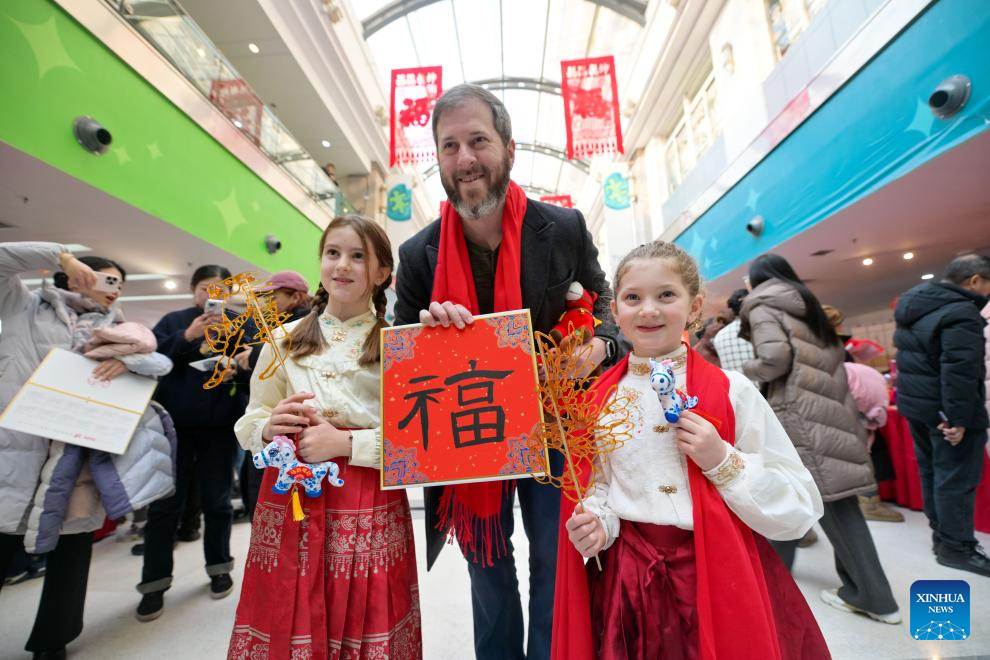 Children craft a "Fu" (meaning "Fortune") decoration during a temple fair for children in north China's Tianjin, on Jan. 24, 2026. A special temple fair tailored for children kicked off in north China's Tianjin on Saturday. Crowds of parents and kids gathered at the fair to experience the festive atmosphere ahead of the Spring Festival. The event features a variety of activities including traditional handicraft making, Tianjin-style food tasting, and interactive games. (Xinhua/Zhao Zishuo)