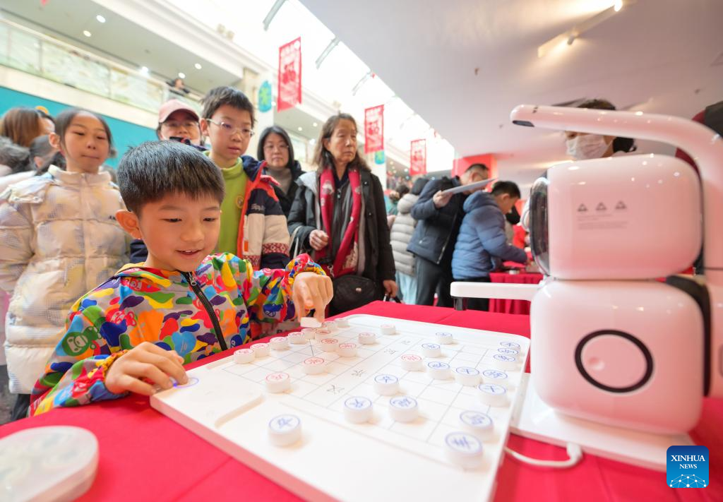 A child plays Xiangqi, a traditional Chinese board game also known as the Chinese chess, during a temple fair for children in north China's Tianjin, on Jan. 24, 2026. A special temple fair tailored for children kicked off in north China's Tianjin on Saturday. Crowds of parents and kids gathered at the fair to experience the festive atmosphere ahead of the Spring Festival. The event features a variety of activities including traditional handicraft making, Tianjin-style food tasting, and interactive games. (Xinhua/Zhao Zishuo)
