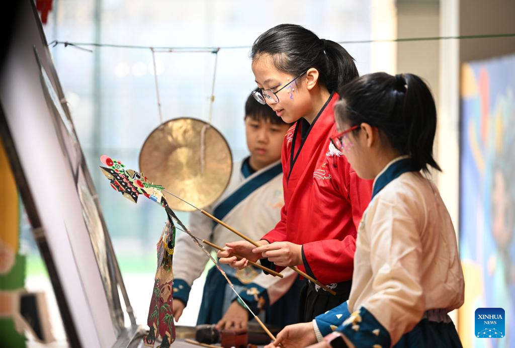 Children try to play shadow puppets during a temple fair for children in north China's Tianjin, on Jan. 24, 2026. A special temple fair tailored for children kicked off in north China's Tianjin on Saturday. Crowds of parents and kids gathered at the fair to experience the festive atmosphere ahead of the Spring Festival. The event features a variety of activities including traditional handicraft making, Tianjin-style food tasting, and interactive games. (Xinhua/Zhao Zishuo)