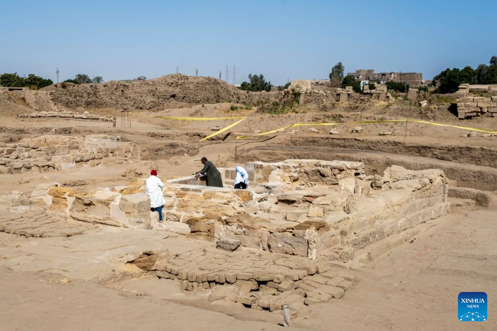 Staff members work at the Montu Temple precinct in the Karnak Temple Complex in Luxor, Egypt, Jan. 24, 2026. An Egyptian-Chinese archaeological mission announced on Saturday that the team has uncovered an ancient "sacred lake" at the Montu Temple precinct in the Karnak Temple Complex in Luxor, a city renowned for its rich monuments in southern Egypt. (Xinhua/Xin Mengchen)
