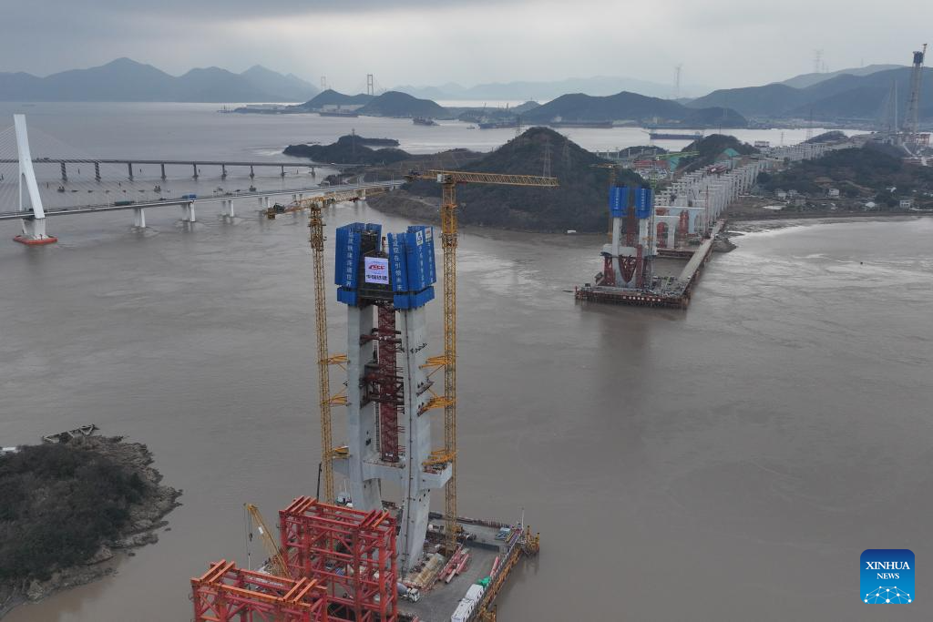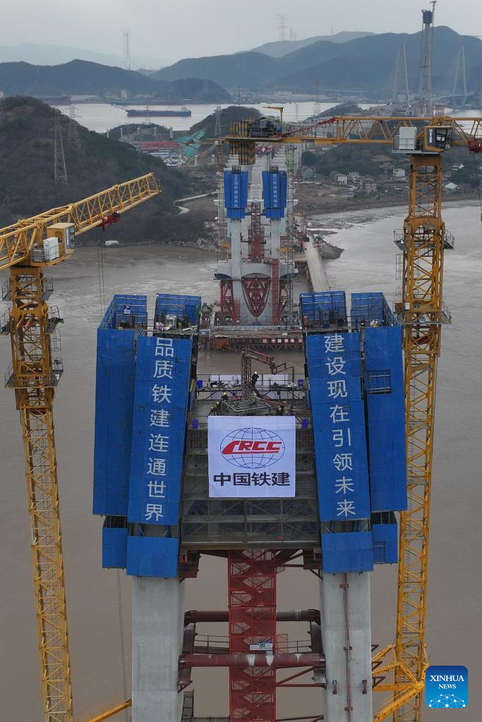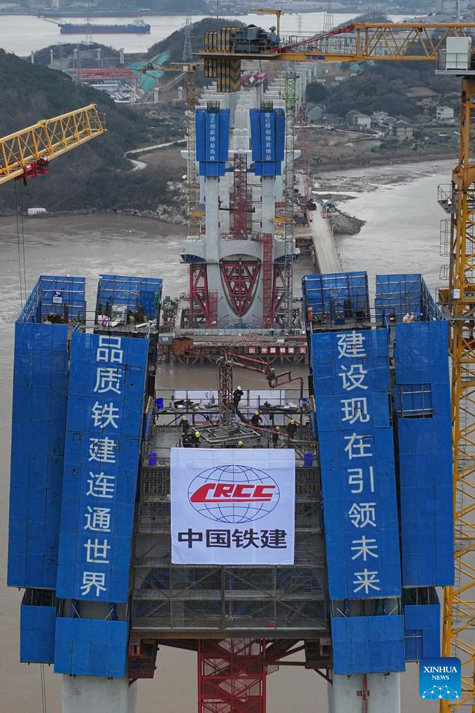 - Main tower of northern navigation channel bridge in China's Zhejiang topped out