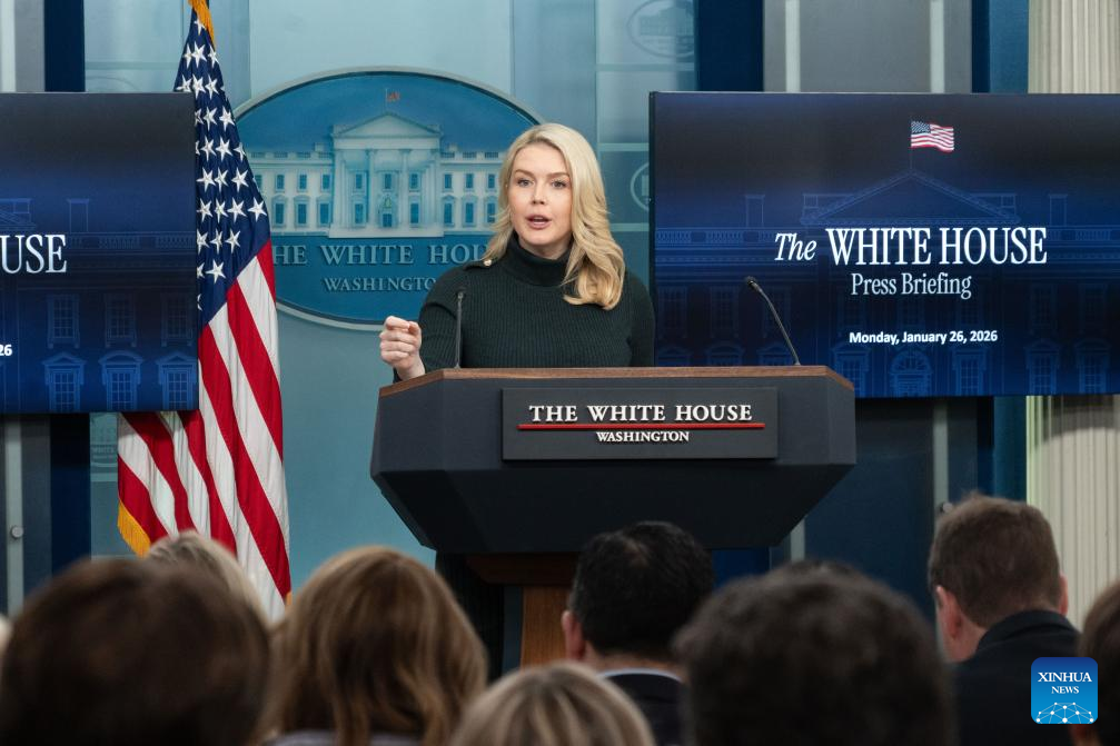 White House Press Secretary Karoline Leavitt speaks during a press briefing at the White House in Washington, D.C., the United States, on Jan. 26, 2026. (Photo by Li Yuanqing/Xinhua)